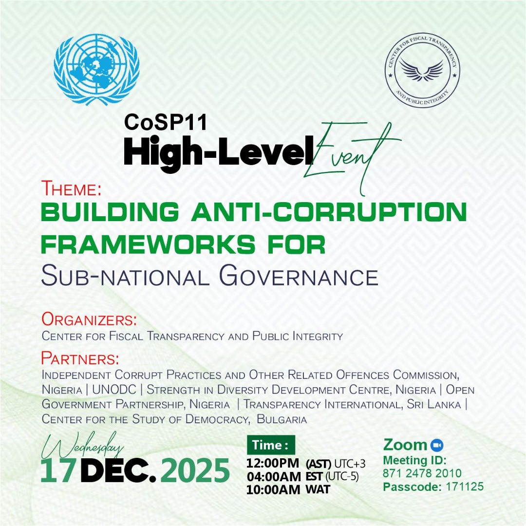 The Center to Participate in, and Convene a High-level Event at the Conference of States Parties (COSP11) to the United Nations Convention against Corruption (UNCAC) in Doha, Qatar.